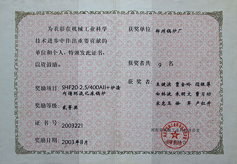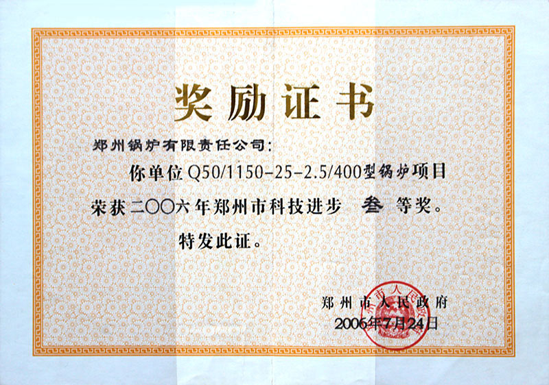 依托強(qiáng)大的科研創(chuàng)新能力,公司百余個(gè)鍋爐產(chǎn)品分別榮獲國(guó)家實(shí)用新型專利,省市級(jí)高新技術(shù)產(chǎn)品證書、科學(xué)進(jìn)步獎(jiǎng)、新產(chǎn)品新技術(shù)等獎(jiǎng)項(xiàng)。